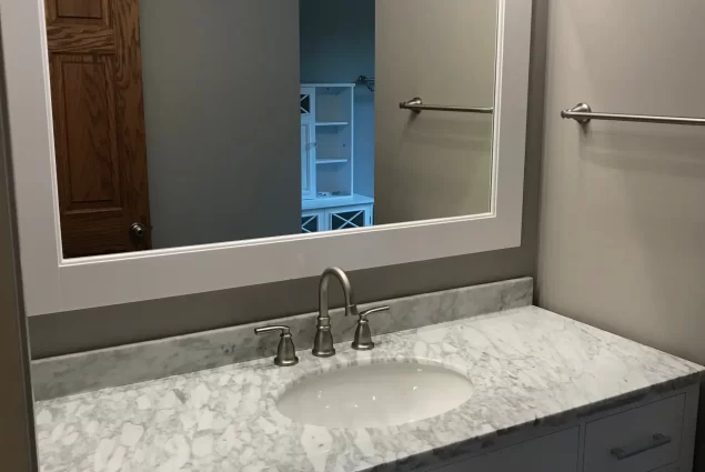 - Custom Vanity – Designed to provide ample storage while complementing the bathroom’s overall design.